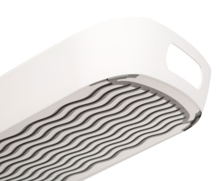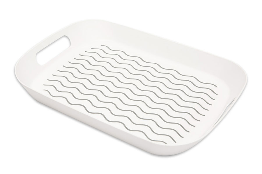Отличный для своей цены поднос: чистый цвет, нескользящая поверхность (стакан не убежит, проверено), высокие борта и удобные ручки для переноса. Однозначно рекомендую!