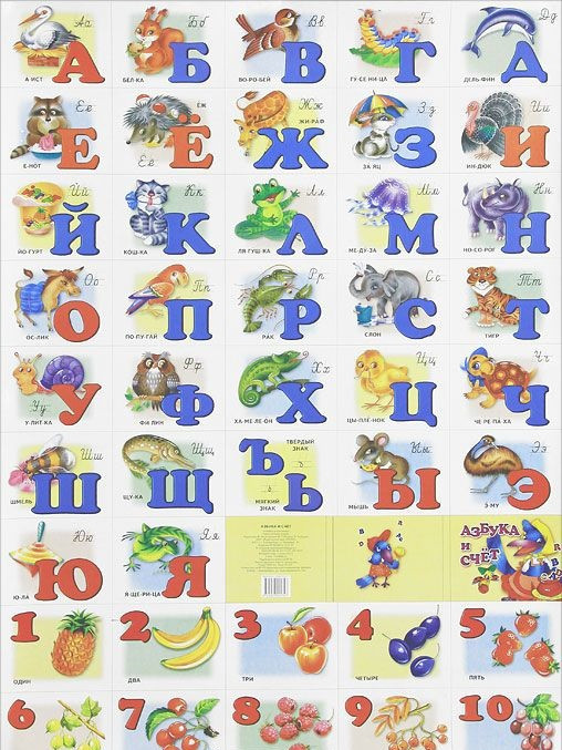 Вашему вниманию предлагается наглядное пособие «Азбука и счет» с буквами русского алфавита и цифрами от 1 до 10. |