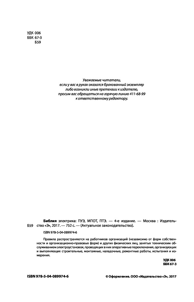 Библия электрика. ПУЭ, МПОТ, ПТЭВладислав Константинович Усанов В данный момент этот товар отсутствует в продаже. Возможно, у нас найдется аналогичный или похожий товар здесь. Правила распространяются на работников организаций (независимо от форм собственности и организационно-правовых форм) и других физических лиц, занятых техническим обслуживанием электроустановок, проводящих в них оперативные переключения, организующих и выполняющих строительные, монтажные, наладочные, ремонтные работы, испытания и измерения. |