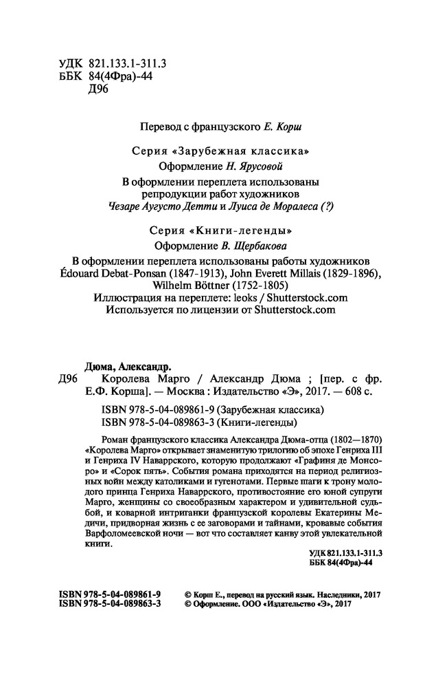 Королева МаргоВ данный момент этот товар отсутствует в продаже. Возможно, у нас найдется аналогичный или похожий товар здесь. Серия: Зарубежная классика Роман французского классика Александра Дюма-отца (1802–1870) «Королева Марго» открывает знаменитую трилогию об эпохе Генриха III и Генриха IV Наваррского, которую продолжают «Графиня де Монсоро» и «Сорок пять». События романа приходятся на период религиозных войн между католиками и гугенотами. Первые шаги к трону молодого принца Генриха Наваррского, противостояние его юной супруги Марго, женщины со своеобразным характером и удивительной судьбой, и коварной интриганки французской королевы Екатерины Медичи, придворная жизнь с ее заговорами и тайнами, кровавые события Варфоломеевской ночи — вот что составляет канву этой увлекательной книги. |
