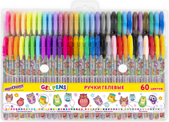 гелевая, желтый, зеленый, красный, оранжевый, синий, фиолетовый, 12 шт.